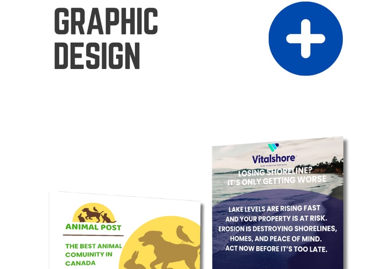 Our expert graphic designers craft custom logos, flyers, business cards, banners, signage, postcards, social media graphics, brochures, packaging, infographics, and more to transform your brand. We create tailored visuals to captivate audiences and boost impact. Proudly Canada-owned and based in Ontario, we serve clients nationwide, from Ontario to across Canada.